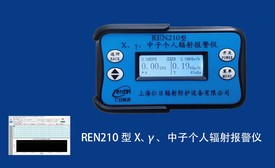 REN210型X、γ、中子個(gè)人輻射報(bào)警儀內(nèi)置SiPM和鋰玻璃晶體組成中子探測(cè)器儀器,采用反照率方式探測(cè)中子射線,同時(shí)也能探測(cè)X、γ射線。因此它可同事監(jiān)檢測(cè)X、γ、中子三種射線。能顯示工作場所的劑量當(dāng)量率和累積劑量,更換電池時(shí),日期及累積數(shù)據(jù)能永久保存。可選配RenRiPersonal個(gè)人劑量管理軟件,該軟件可存儲(chǔ)多個(gè)人的歷史數(shù)據(jù),能記錄日累積、月累積、年累積、輻照時(shí)長、計(jì)算平均劑量率、扣除或不扣除本底輻射,且以文字和圖譜的方式展現(xiàn)數(shù)據(jù)。廣泛應(yīng)用于環(huán)保、化工、水泥、煤礦、土木工程、石油、醫(yī)院、疾控、進(jìn)出口商檢、核電、加速器、機(jī)場、中子源庫和其他安檢、邊境控制海關(guān)檢測(cè)等領(lǐng)域中的工作人員進(jìn)行個(gè)人安全防護(hù)監(jiān)測(cè)及放射性提示。